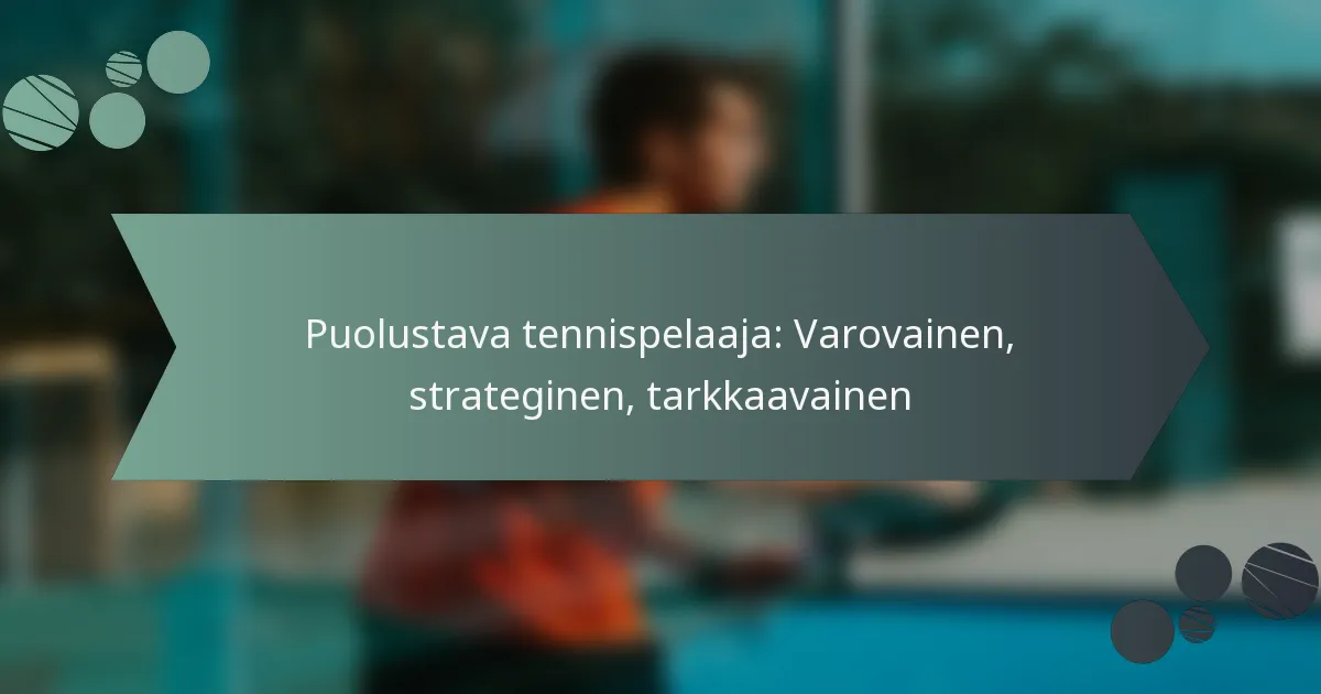 Puolustava tennispelaaja tunnistetaan varovaisesta ja strategisesta lähestymistavastaan peliin, keskittyen palautuksiin ja vastustajien kestävyydestä voittamiseen sen sijaan, että pelaisi aggressiivisesti. Tämä tyyli korostaa havainnointia, kärsivällisyyttä ja sopeutumista, mikä mahdollistaa pelaajien hyödyntää vastustajiensa heikkouksia samalla kun riskit minimoidaan.