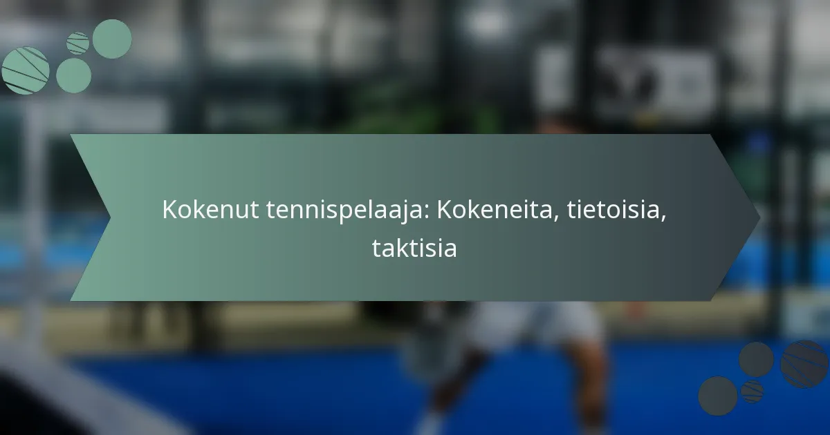 Kokenut tennispelaaja on henkilö, jolla on laaja kokemus, taktista tietämystä ja syvällinen ymmärrys pelistä. Nämä pelaajat ovat hiottaneet taitojaan vuosien harjoittelun ja kilpailun myötä, mikä mahdollistaa heidän suoriutuvan johdonmukaisesti korkealla tasolla.