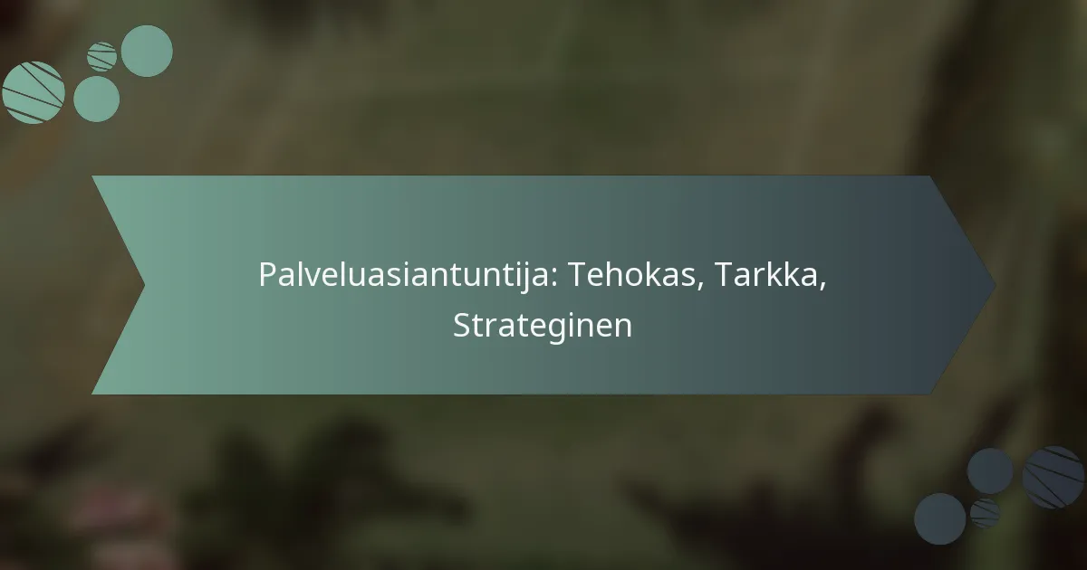 Palveluasiantuntija keskittyy räätälöityjen palveluratkaisujen tarjoamiseen, erottuen rooleista kuten palvelupäälliköistä ja asiakassuhteiden hallintapäälliköistä. Heidän ensisijainen tavoitteensa on parantaa asiakastyytyväisyyttä strategisen palvelun toimituksen ja tarkkojen palveluhankkeiden toteutuksen kautta.